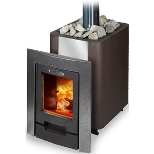Банная печь оснащена стальной дверкой со стеклом, немецкого производства Schott Robax, благодаря которому можно наслаждаться горением дров из комнаты отдыха.